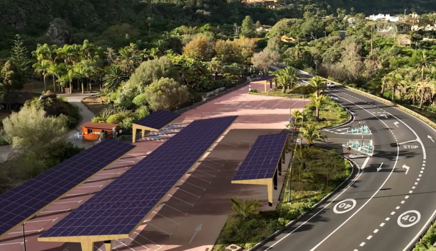 La instalación solar fotovoltaica se realizará sobre marquesinas de madera con certificado PEFC y bajo el diseño realizado en colaboración con el Servicio de Arquitectura del Cabildo de Gran Canaria.