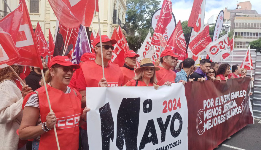 UGT y CCOO salieron a la calle este pasado jueves, 1 de Mayo, Día Internacional de los Trabajadores, con diferentes movilizaciones en las islas, principalmente en Gran Canaria y en Tenerife, por la defensa de los derechos sociales y laborales y el foco puesto en la lucha por "un reparto más justo de la riqueza", especialmente la derivada del turismo. Las concentraciones reunieron a unas 1.000 personas en Santa Cruz de Tenerife y unas 1.800 en Las Palmas de Gran Canaria, según datos facilitados a Europa Press por Delegación del Gobierno en Canarias.
