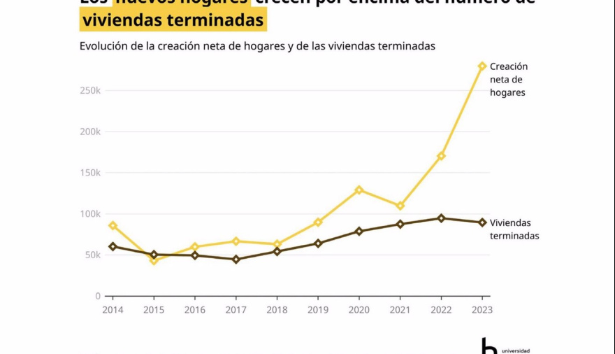 España acumula un déficit habitacional de 423.000 viviendas nuevas debido a trabas administrativas y falta de mano de obra, según un informe que radiografía el mercado de la vivienda en España, realizado por la Universidad de las Hespérides.