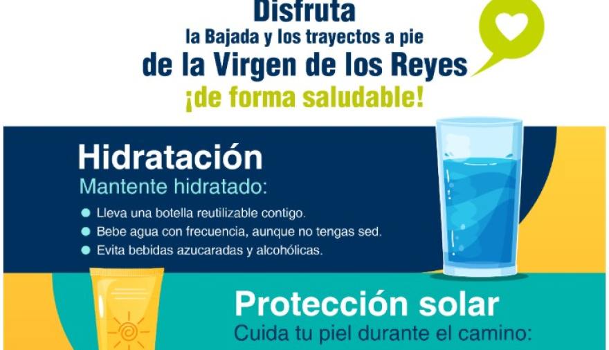 Así, en estos materiales divulgativos se recuerda la importancia de mantener una buena hidratación mediante el consumo de agua, utilizar protección solar para evitar problemas dermatológicos y realizar los trayectos a pie de manera moderada y adaptadas a las condiciones de cada una de las personas.