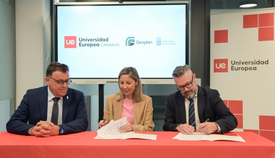 La empresa pública Gestión y Planeamiento Territorial y Medioambiental (Gesplan S.A.) cooperará con la Universidad Europea de Canarias en el desarrollo de proyectos relacionados con la formación y la investigación. Así lo han acordado ambas instituciones mediante la firma de un convenio de colaboración, rúbrica que ha sido presidida por el consejero de Política Territorial, Cohesión Territorial y Aguas del Gobierno de Canarias, Manuel Miranda, y la rectora de esta institución académica, Cristiana Oliveira.