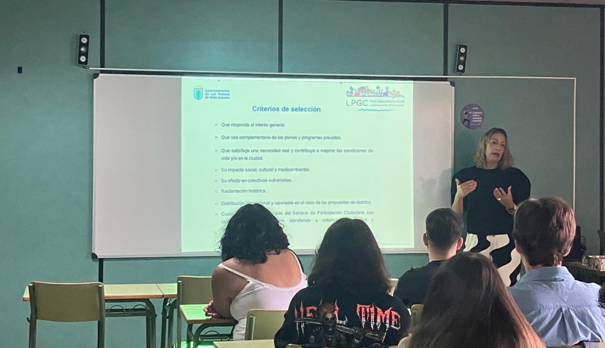La concejala aprovechó el encuentro para explicar los principios de la educación democrática y la participación ciudadana, así como los distintos canales de implicación con los que cuenta el Ayuntamiento de Las Palmas de Gran Canaria. En especial, junto a una técnico municipal, detalló el funcionamiento de los Presupuestos Participativos Municipales, cuyo plazo de presentación de propuestas permanecerá abierto hasta este 22 de junio a través de la plataforma digital decide.laspalmasgc.es.