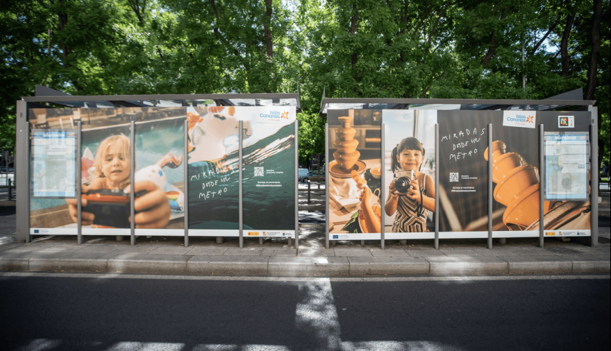 La campaña cuenta con un spot que se está proyectando en cines de Madrid, Barcelona, Bilbao y Sevilla y se despliega también en marquesinas y mupis personalizados con dos cámaras fotográficas incorporadas que propician la interactividad del usuario que, al acercarse, puede ver las distintas perspectivas del adulto y el niño sobre un mismo paisaje de las islas.