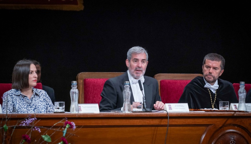 “La universidad es un actor clave de presente y de futuro porque sin universidad no hay investigación, sin investigación no hay generación de nuevo conocimiento y sin transferencia del conocimiento no ha progreso”, dijo Fernando Clavijo en su intervención ante una amplia representación de la comunidad universitaria y representantes políticos, civiles y sociales. “Y en el Gobierno somos plenamente conscientes y vamos a ejercer, de una manera decidida, una apuesta para impulsar la colaboración público-privada como un motor de cambio económico y social en nuestra región”. En este ámbito, el presidente alentó la colaboración entre administración, universidad y empresas para fortalecer los recursos sociales, laborales y económicos de las islas. “El futuro de nuestra sociedad dependerá, en gran medida, de lo rápido que asimilemos este cambio de paradigma”, subrayó Clavijo en una invitación abierta a todos los sectores implicados para “impulsar un modelo innovador de triple hélice” en el archipiélago.