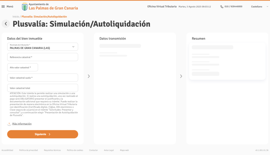 El simulador está disponible a través de la web de la Oficina Virtual Tributaria del Ayuntamiento de Las Palmas de Gran Canaria, en el enlace https://laspalmasgc.tributoslocales.es/350163/APALMASGC/plusvalia.