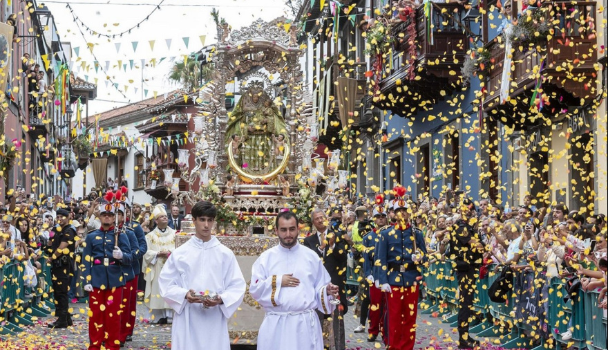 Asimismo, la Solemne Misa comenzará a las 12.00 horas y, en torno a las 13.00 horas se iniciará la procesión, con su recorrido por la calle Iglesia Chica, la Cal, Calle Nueva, Isaac Domínguez y Calle Real de la Plaza. Acompañará a la comitiva la Banda de Música de Teror, dirigida por Óscar Sánchez Benítez, el desfile de la Banda de Guerra nº1 de la Brigada Canarias 16, una sección del Regimiento Canarias 50 y una Escuadra de Gastadores del Regimiento Canarias 50.