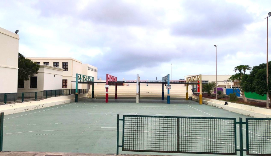 El colegio de Playa Blanca, con 825 alumnos y alumnas, es el segundo centro más poblado de Canarias, pero su cancha principal solo cuenta con una pequeña parte cubierta, “así que niños y niñas están expuestos al sol, y el objetivo es que puedan disfrutar de mejores comodidades en su tiempo de descanso”.
