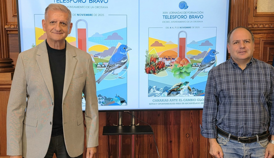 El Ayuntamiento de La Orotava celebrará del 4 al 7 de noviembre próximo las XXIV Jornadas de Formación “Telesforo Bravo”, dedicadas un año más a concienciar sobre el entorno natural. Esta edición se centrará en los desafíos medioambientales a los que se enfrenta Canarias, con un total de diez ponencias y tres rutas temáticas por el Parque Rural de Teno, sendero de la costa de Punta del Hidalgo en La Laguna y la Corona Forestal. El programa de charlas se desarrollará en el Centro de Visitantes Telesforo Bravo para lo cual las inscripciones ya se encuentran abiertas.