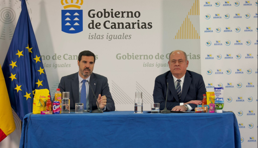 El viceconsejero de Economía e Internacionalización del Gobierno de Canarias y vicepresidente de Proexca, Gustavo González de Vega, y el presidente regional de Asinca, Virgilio Correa Suárez, presentaron este pasado jueves la campaña DesdeCanarias para productos de la marca Elaborado en Canarias, una iniciativa de comunicación destinada a poner en valor el sello de origen de los productos canarios y promover su consumo en la Península.