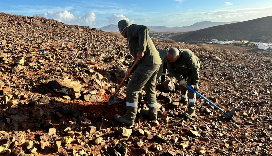 Los trabajos de adecentamiento y rehabilitación sostenible de este paisaje tradicional del municipio de Antigua, como ya se hizo meses atrás con Tiscamanita, en el municipio de Tuineje, implican a varias cuadrillas especializadas en la recuperación de muros de piedra seca y en el desbroce y rehabilitación de gavias para cultivo.
