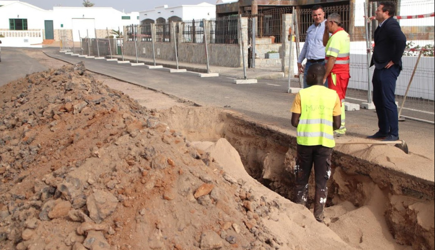 La dirección de obra del proyecto de implantación de la red de alcantarillado de Uga confirma que las obras marchan a buen ritmo al cumplirse mes y medio de ejecución, se trata de la primera fase de trabajos de excavación e instalación de tuberías para saneamiento que avanzan desde la periferia hacia el centro del pueblo, según explicaron responsables técnicos al alcalde de Yaiza, Óscar Noda, y el concejal de Obras Públicas, Ángel Lago, en su visita de la semana pasada a la zona de actuación en calles próximas al terrero municipal de lucha.