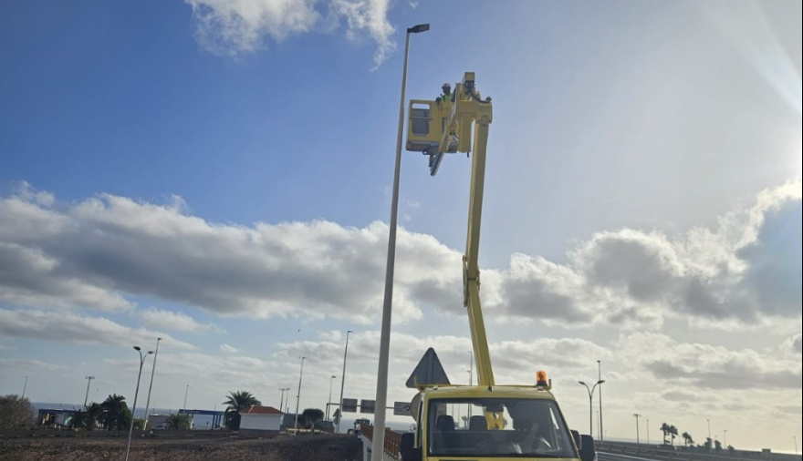 En el caso que nos ocupa del acceso al aeropuerto de Fuerteventura, los operarios del Servicio de Carreteras y de la UTE adjudicataria del mantenimiento han sustituido las 22 luminarias existentes en este tramo, lo que mejora la visibilidad en horario nocturno tanto para los conductores como para los viandantes que transiten por el nuevo acceso peatonal al aeropuerto, también ejecutado por el Servicio de Carreteras.