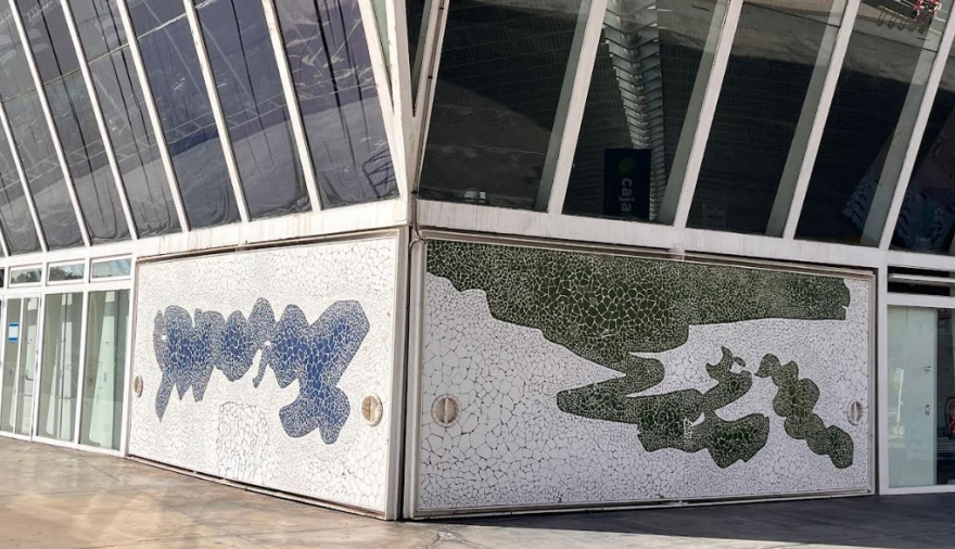 En lo referentes al revestimiento de cada portón estará formado por panel sándwich tipo Glassydur, sobre bastidor metálico, revestido con azulejo cerámico tipo Trencadis de hasta cuatro colores, conforme al diseño actual.