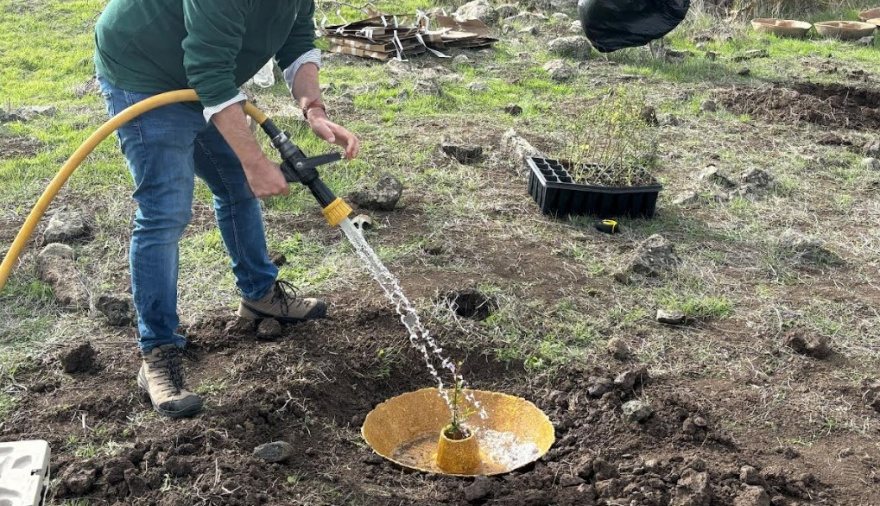 Con la llegada de la temporada de lluvias, los prototipos se están probando en un recinto vallado en San José del Álamo, donde se están plantando 90 acebuches siguiendo tres metodologías distintas: 30 ejemplares plantados con el retenedor de agua fabricado con residuo de platanera; 30 con el sistema comercial Growboxx Plant Cocoon, ya utilizado en otros proyectos LIFE en Gran Canaria; y 30 plantados de manera convencional, directamente en tierra. El objetivo es comparar la supervivencia, así como el crecimiento en altura y el diámetro del tronco al cabo de un año.