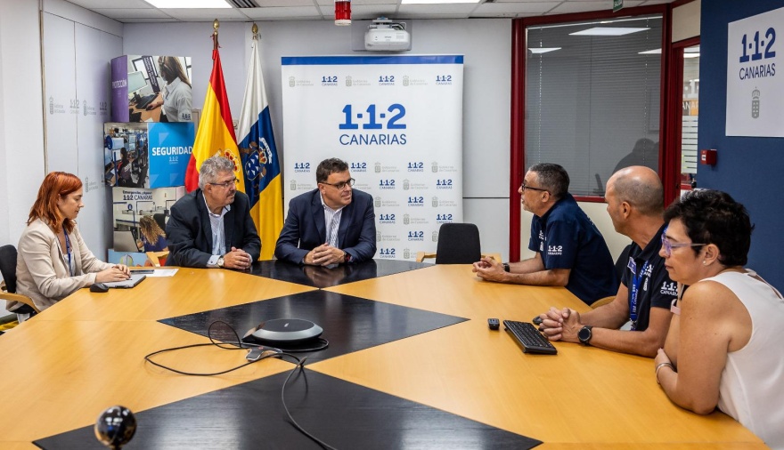 El consejero de Política Territorial, Manuel Miranda, cuyo departamento ha asumido las competencias de Emergencias, recorrió las instalaciones de la Sala Operativa del 112 en la capital grancanaria, y agradeció personalmente el trabajo de los profesionales de diferentes cuerpos y administraciones que prestan servicio en la misma.