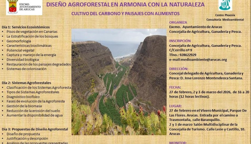 El Ayuntamiento de Arucas, desde la concejalía de Agricultura, Ganadería y Pesca, ofrece, durante los meses de febrero y marzo, cinco talleres prácticos gratuitos para la mejora del sector primario. Una iniciativa destinada a la ciudadanía en general y los profesionales agrícolas que quieran profundizar o acercarse al mundo de la agricultura regenerativa.