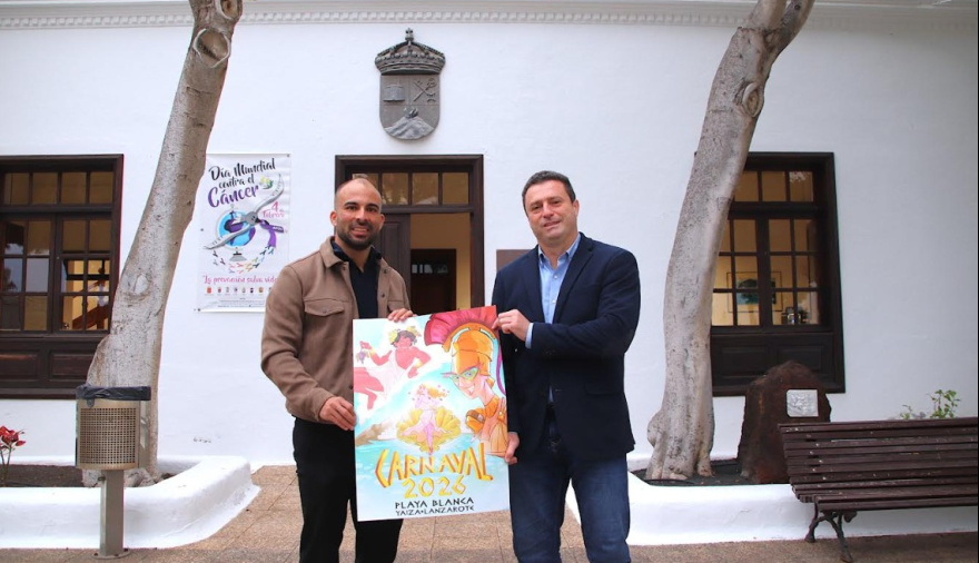 Playa Blanca inspira su Carnaval 2026 en Los Dioses del Olimpo y de esa mitología griega emergen tres de ellos para poner cara a la fiesta sureña. La obra gráfica ‘Olimpo en Yaiza’ es autoría del diseñador grancanario Armando Arencibia Martín, ganador del concurso abierto por el Ayuntamiento. Yaiza recibió un total de 15 propuestas con premio único al ganador de 1.200 euros.