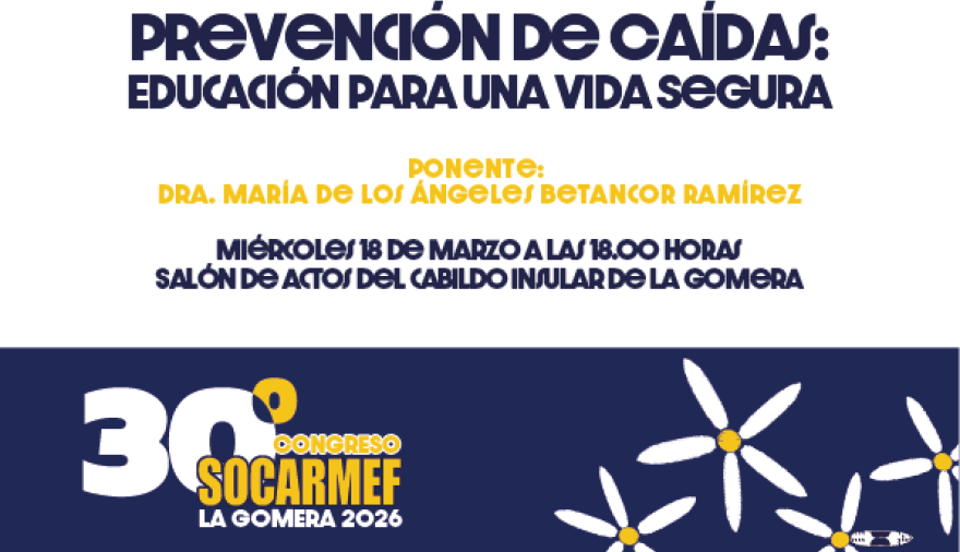 El Salón de Plenos del Cabildo de La Gomera acoge, este miércoles, 18 de marzo, a partir de las 18:00 horas, la conferencia ‘Prevención de caídas: educación para una vida segura’, impartida por la Dra. María de los Ángeles Betancor Ramírez, presidenta de la Sociedad Canaria de Rehabilitación y Medicina Física (SOCARMEF).
