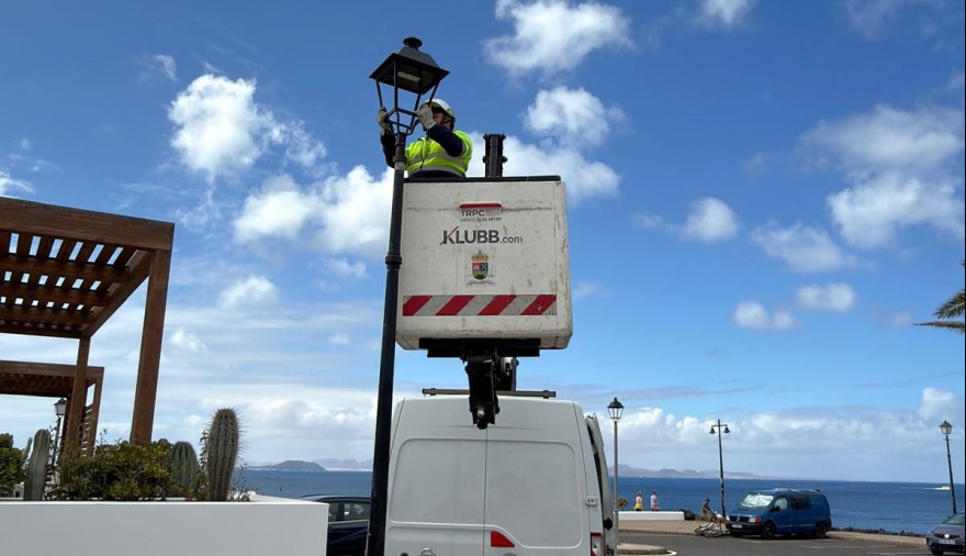 El Ayuntamiento de Yaiza realiza esta semana trabajos de sustitución de luminarias deterioradas en el plan parcial San Marcial del Rubicón de Playa Blanca, una acción del programa municipal de mejora del alumbrado público que prevé además la renovación total de las farolas del carril bici que conecta la entrada de Playa Blanca con la zona industrial de esta misma localidad, donde la Administración instalará farolas solares totalmente autosuficientes a la espera de que el proveedor las despache a Lanzarote el próximo mes de junio.