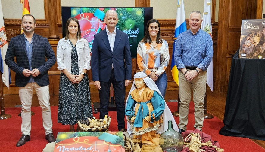 Un año más, La Orotava ofrece un amplio abanico de actos para celebrar y vivir, de una forma amena y divertida, una de las fiestas más entrañables del año como es la Navidad. Este pasado miércoles se presentó la agenda que se desarrollará a lo largo de mes y medio y que engloba unos 120 actos lúdico, culturales, religiosos, y para todos los públicos y edades. El acto de presentación estuvo a cargo del alcalde Francisco Linares; el concejal de Fiestas, Alexis Pacheco; la concejala de Comercio, Deisy Ramos, y el presidente de la Asociación Belenista Taoro, Esteban García Morales.