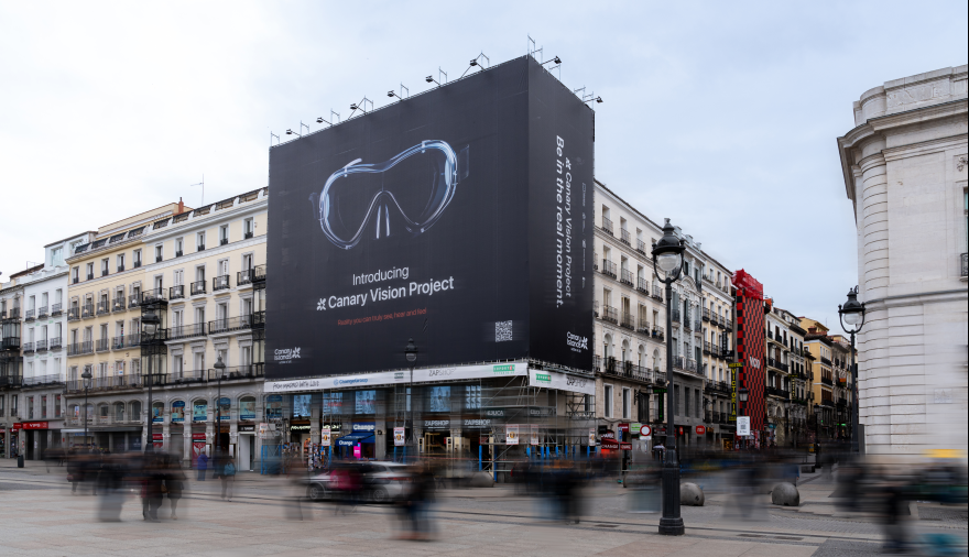 Turismo de Canarias ha aprovechado la repercusión generada por las nuevas gafas de realidad virtual desarrollando una campaña publicitaria de gran impacto en el centro de Madrid, en la que lanza sus propias gafas, las ‘Canary Vision Project’, pero prometiendo en este caso una experiencia totalmente real: la que ofrecen las islas como destino turístico.