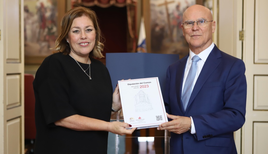 El Diputado del Común, Rafael Yanes, entregó este pasado jueves a la presidenta del Parlamento de Canarias, Astrid Pérez, el Informe Anual 2023 de la Diputación del Común.