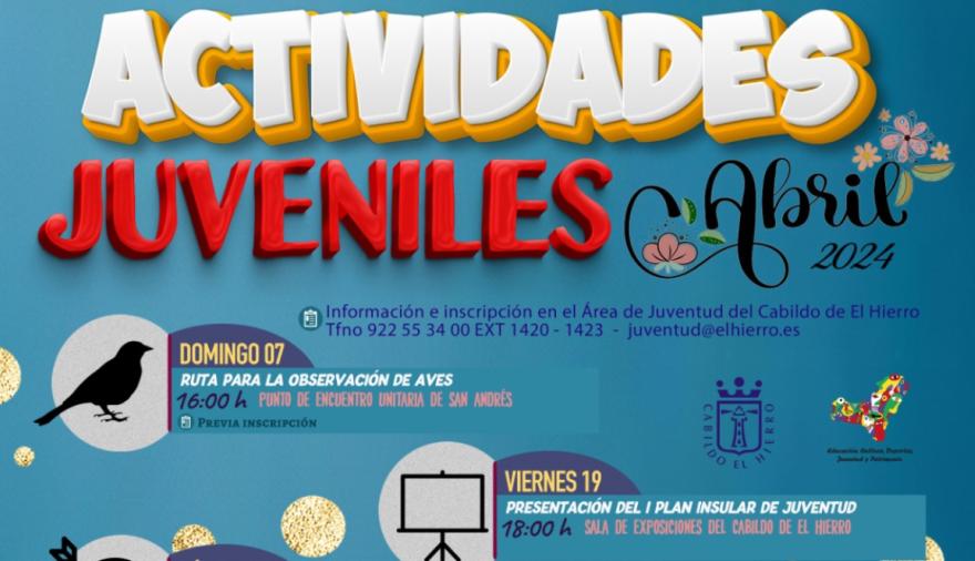 Además, el 19 de abril, a las 18:00 horas, en la Sala de Exposiciones del Cabildo de El Hierro, se llevará a cabo la presentación del primer "Plan Insular de Juventud", "un documento participativo que promete brindar una visión integral sobre las iniciativas y proyectos destinados a la juventud de la isla", informa el consejero.