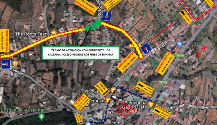 Las labores obligarán a la modificación del tráfico desde este lunes, 27 de mayo, hasta el 12 de julio. Las obras se realizan en dos fases: una primera que supondrá el corte del tramo entre las calles El Calvario y Zamorano en las que sólo se permitirá la circulación a los residentes; y otra fase en sentido descendente hacia Agua García y La Esperanza, entre el tramo de las calles La Fuente y Zamorano. En esta última fase de las obras se podrán producir de forma puntual cortes totales de la calzada según las necesidades de la misma y se permitirá la circulación en un único sentido del punto kilométrico 0+230 al 0+575 de las calles La Fuente y Zamorano.
