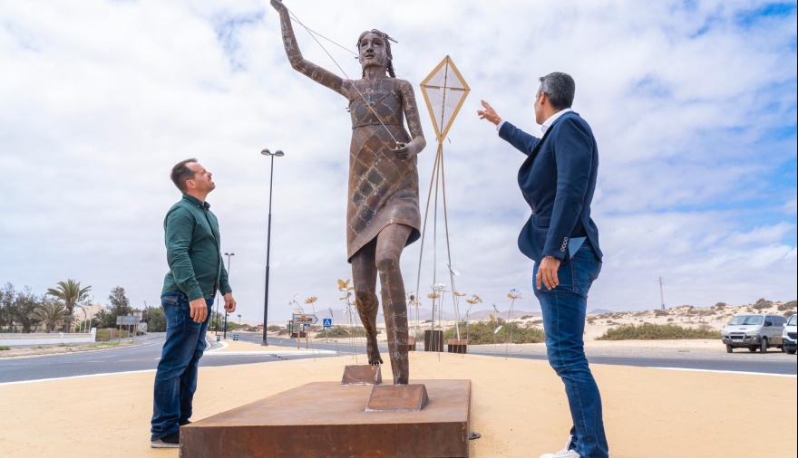 El Ayuntamiento de La Oliva presenta una escultura emblemática con la que resaltar el Festival Internacional de Cometas como una de las principales atracciones. El festival, que este pasado año celebraba su 36 edición, acogió a más de 70.000 asistentes batiendo récords de participación y público asistente en una experiencia única que llenó el cielo de Corralejo de color.