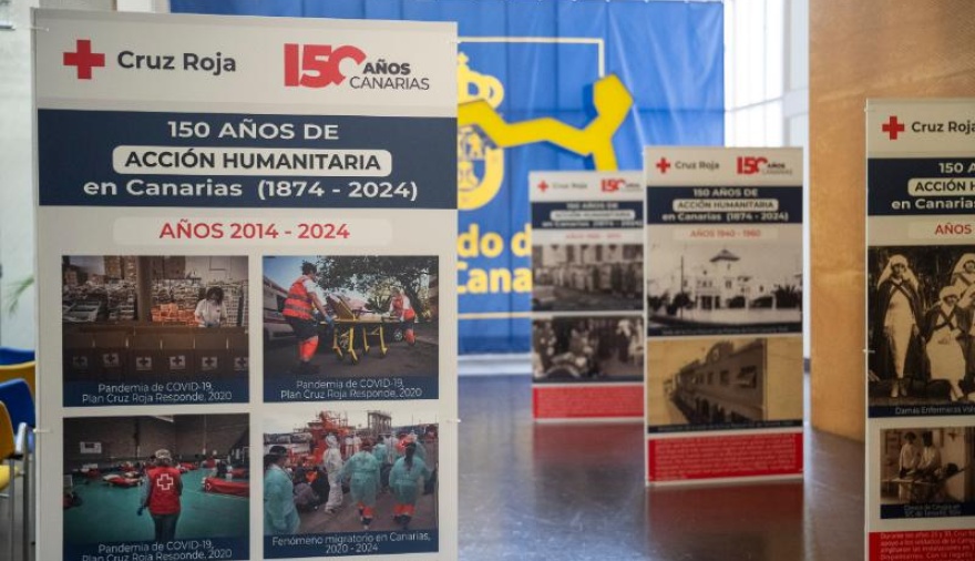 El patio de la sede del Cabildo de Gran Canaria acoge hasta el próximo 30 de junio la exposición itinerante de fotografía que visibiliza el recorrido de Cruz Roja desde su llegada a las Islas hace 150 años.