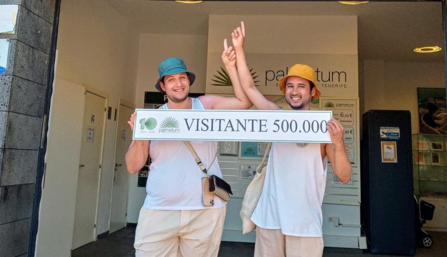El parque celebró recientemente este relevante acontecimiento junto a sus protagonistas, una pareja procedente de Suiza que escogió Tenerife para pasar sus vacaciones y que incluyó al Palmetum como una de sus visitas principales. Los turistas, que disfrutaron de un paseo entre la mejor colección de palmeras de Europa, fueron obsequiados con una selección de suvenires de la tienda como recuerdo de su paso por el parque.