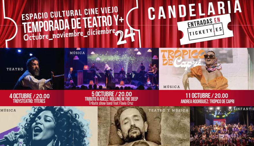 El Ayuntamiento de Candelaria ha preparado una diversa programación para el último trimestre del año en el Espacio Cultural Cine Viejo. El objetivo es continuar consolidando este espacio como un referente cultural en el municipio, ofreciendo una amplia variedad de espectáculos para todos los gustos.