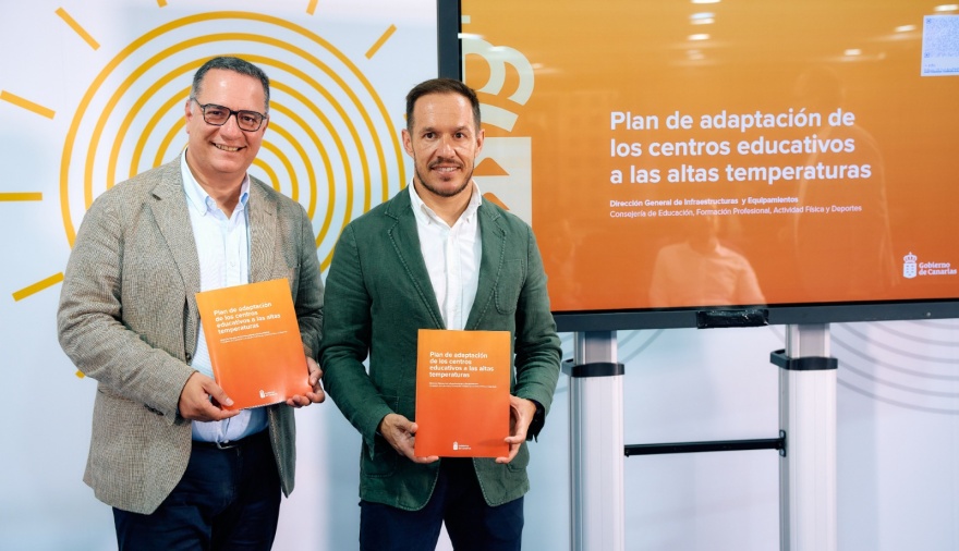 El Gobierno de Canarias da un paso más para la adaptación de sus centros escolares frente a episodios de altas temperaturas con la creación de un plan específico dotado con más de treinta millones de euros y que fue presentado este pasado martes por los consejeros de Educación, Formación Profesional, Actividad Física y Deportes y de Transición Ecológica y Energía, Poli Suárez y Mariano H. Zapata, respectivamente.