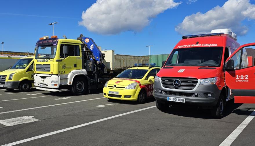 El dispositivo, que embarcó ayer a mediodía en un barco de Fred Olsen con destino a Huelva, está compuesto por un Puesto de Mando Avanzado (PMA) ligero del Grupo de Emergencias y Salvamento (GES), un vehículo de intervención rápida del Servicio de Urgencias Canario (SUC) y cuatro vehículos del Consorcio de Emergencias de Gran Canaria, así como seis efectivos de estos servicios de emergencia.