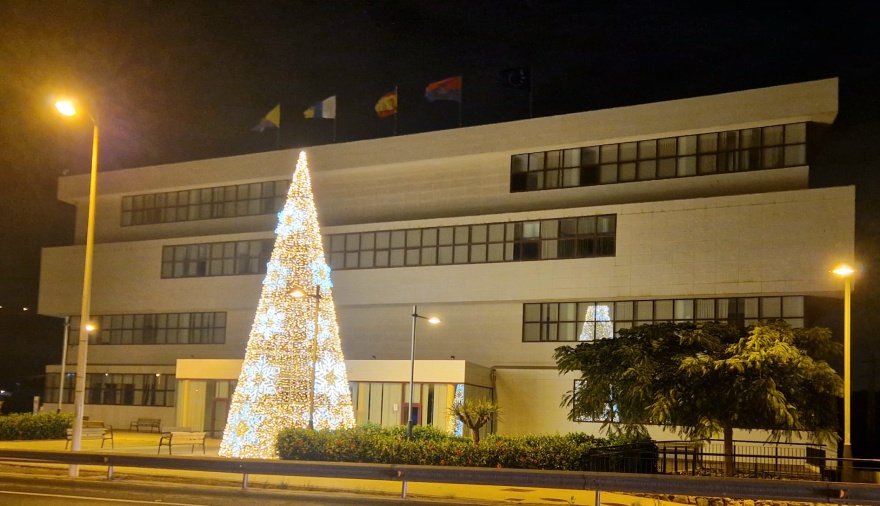 El espíritu navideño brilla con fuerza en el municipio de Telde. A los diferentes atractivos creados en diferentes espacios del casco fundacional de la ciudad, como el Jardín de la Navidad (en el parque Arnao) o el Bosque de los Sueños (en el parque Santa Rosalía), ahora se suma la instalación de un espectacular árbol de luces de 12 metros de altura en la zona de El Cubillo. Este impresionante elemento decorativo, que embellece las noches del Ayuntamiento, ha sido instalado por la Concejalía de Alumbrado Público, área bajo la dirección de Juan Francisco Artiles.