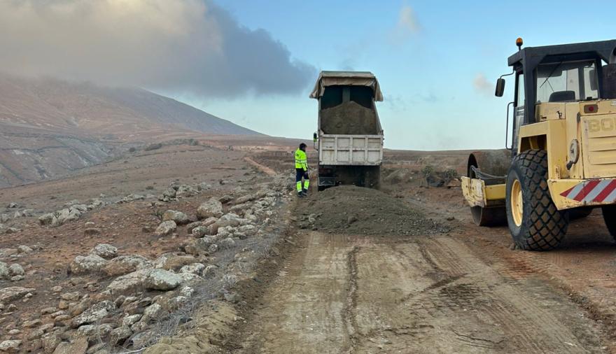 El Servicio de Obras y Maquinaria del Cabildo de Fuerteventura está concentrando esta semana los trabajos del tren de recebe en el municipio de Betancuria. Se están arreglando caminos de tierra de especial importancia estratégica como el que conecta el pueblo con el depósito de agua; una planificación que se coordinará con el Ayuntamiento.