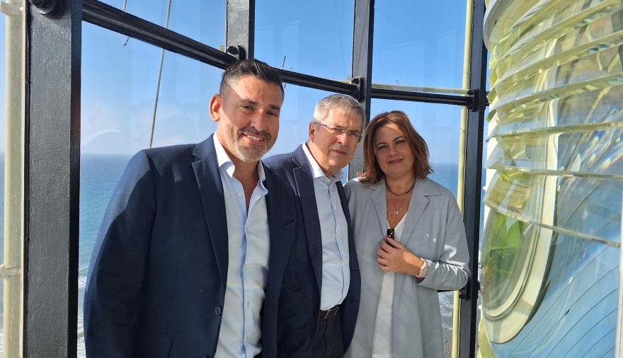 La presidenta de Puertos de Las Palmas, Beatriz Calzada, acompañada por el alcalde de San Bartolomé de Tirajana, Marco Aurelio Pérez, y el primer teniente de alcalde de este municipio, Alejandro Marichal, visitaron este pasado miércoles el Faro de Maspalomas, declarado Bien de Interés Cultural y que este año cumple 140 años desde el inicio de su construcción.