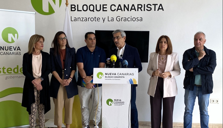 El presidente nacional de Nueva Canarias-Bloque Canarista (NC-BC), Román Rodríguez, junto el presidente insular de los canaristas en Lanzarote, Yoné Caraballo, y el resto de los miembros del grupo parlamentario; en una rueda de prensa en la sede insular de la formación en Arrecife, han dado a conocer la jornada de trabajo desplegada en la isla para reforzar su “oposición frontal al modo Clavijo (Fernando, presidente del Gobierno canario)” de gobernar y hacer política.