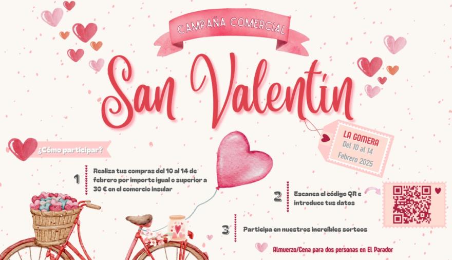 El Cabildo de La Gomera y la delegación de la Cámara de Comercio de Santa Cruz de Tenerife en la isla impulsan una campaña de dinamización comercial con motivo del día de San Valentín. Así, con esta acción comercial se pretende incentivar a los consumidores a realizar sus compras y consumir en los establecimientos de la isla en la víspera de esta festividad.