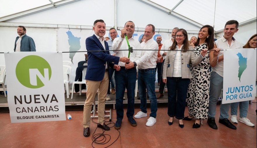 La Asamblea General de Juntos por Guía aprobó por unanimidad su desvinculación de Nueva Canarias en la mañana de este pasado sábado. Pedro Rodríguez, presidente del partido, junto al grupo de concejales en el Ayuntamiento y numerosos representantes del sector renovador escenificaron la desconexión con la ruptura de un cable que unía los logos de ambos partidos.