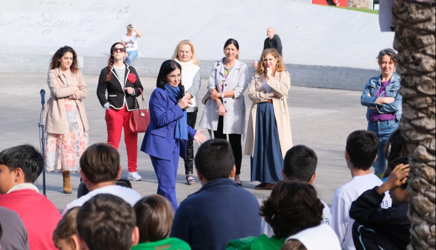 El I Encuentro por la Igualdad, que se ha celebrado en la plaza del Ingeniero León y Castillo, ha sido impulsado por los centros educativos CEIP Iberia, CEIP Nanda Cambres, CEIP Giner de los Ríos y CEIP Aguadulce, todos ellos situados en el Distrito Centro de la ciudad. En este acto, el alumnado de sexto de Primaria ha realizado representaciones sobre momentos clave en la historia de la lucha por la igualdad. Además, el Coro del CEIP Giner de los Ríos ha interpretado una canción con un mensaje a favor de la equidad de género.