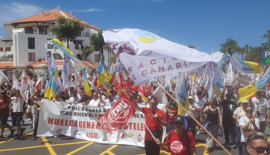Unas 2.000 personas se manifestaron en la jornada de este pasado viernes en Adeje (Tenerife) bajo el lema 'Por el reparto de la riqueza. Más derechos y mejores salarios' y en el marco de la huelga general de hostelería en la provincia de Santa Cruz de Tenerife, según datos que la Delegación del Gobierno en Canarias ha facilitado a Europa Press.